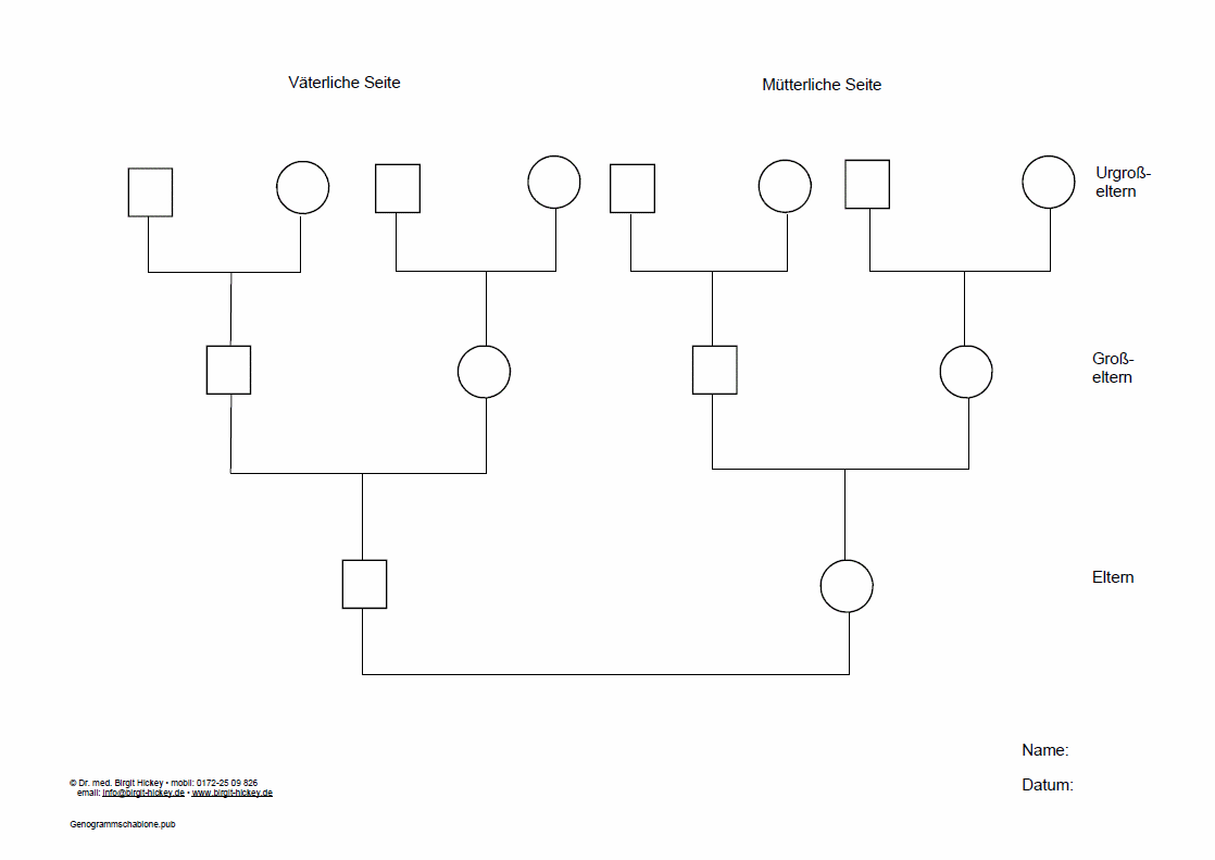 Nach dem medizinischen Leitsatz „eine gute Anamnese ist ¾ der Diagnose“ als Voraussetzung für die weitere Therapie wird zusammen mit dem Patienten das Genogramm erstellt.